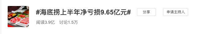 亏损额也非同小可。算下来,仅半年时间,海底捞就净亏损9.65亿。